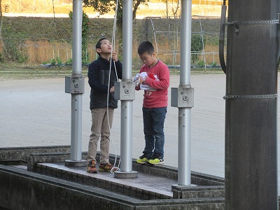 今朝は気持ちのいい青空が広がっています。子どもたちは朝清掃や旗揚げを頑張ってくれています。今日も一日頑張りましょう。