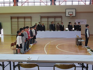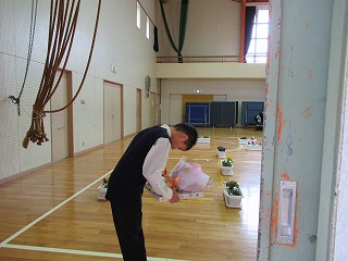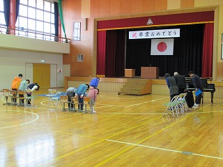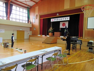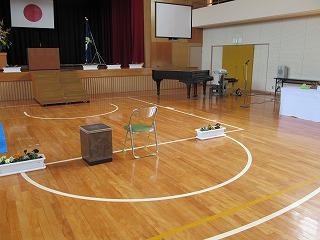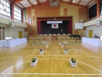 6年生の児童と先生方で体育館の準備をしました。てきぱきと準備し、約1時間程度で終了しました。
