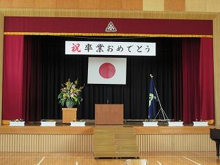 いよいよ卒業式の朝になりました。玄関、体育館、教室など、結月くんの卒業に向けて準備されています。