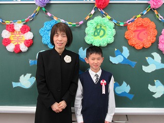 結月くん、卒業おめでとう!この御槙小学校での思い出を胸に、中学校でも頑張ってください。また、いつでも遊びに来てくださいね。
