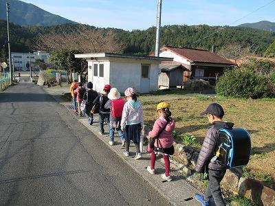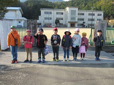 平成30年度の修了式の朝です。6年生は卒業して、8人での登校です。
