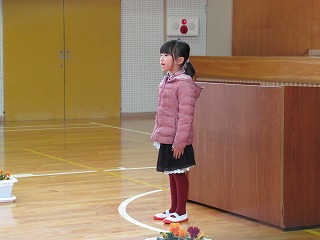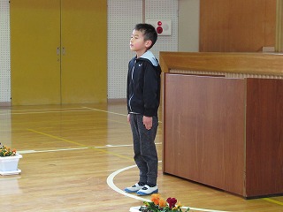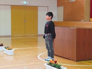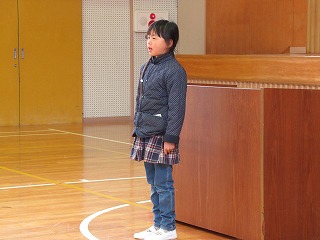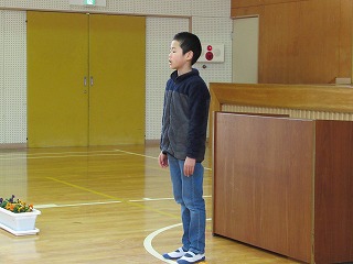 平成最後の修了式です。一人一人、一年間を振り返っての思い出と春休みや進級しての抱負を発表しました。
