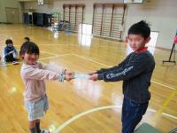 まずは、しっぽ取りゲームです。体に触れずしっぽを取るのはなかなか難しいようです。