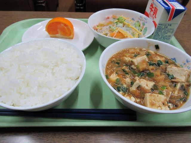 2019年3月7日 12時20分今日の献立は、ごはん、牛乳、麻婆豆腐、バンサンスー、せとかです。