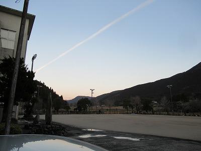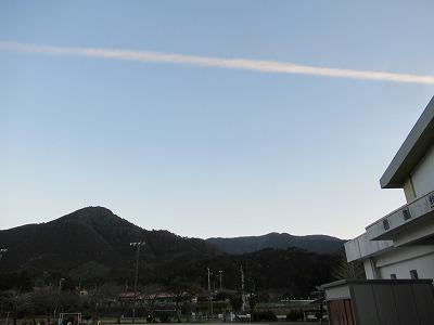 今朝はよく晴れて、飛行機雲がきれいに見えます。今日は14:30よりPTA総会及び学期末懇談会です。保護者の皆様、よろしくお願いいたします。