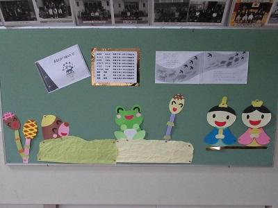 保健室前掲示 2019年3月4日 06時56分 保健室前の掲示が可愛くなっています。 つくしが出て、モグラやカエルも顔を出して春を感じます。「あなたが生まれた日」そのすばらしいニュースは、世界中に伝わった。心温まる詩ですね。