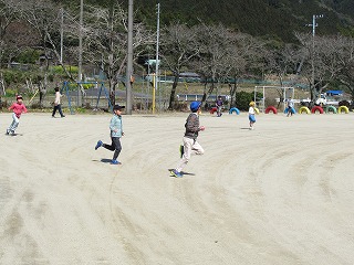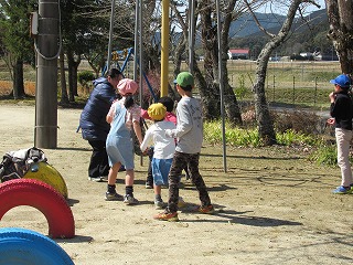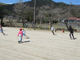 昼休み 2019年3月14日 13時34分 今日は運動場も乾いて久しぶりに外で鬼ごっこです。先生たちも混ざって、けいどろや手つなぎ鬼で走り回りました。風は冷たいですが、周りの草木を見ていると、春の訪れを感じるようになってきています。