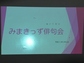 2019年3月4日 10時24分いきいきタイムで、みまきっず俳句会を行いました。子どもたちがそれぞれ詠んだ俳句を披露です。