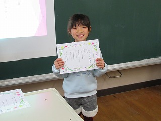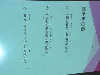 杏奈さんと結月くんが低学年の部、高学年の部の優秀句に選ばれました。いちご狩りの楽しい風景や、卒業が近づきちょっと寂しい感じが表れていますね。